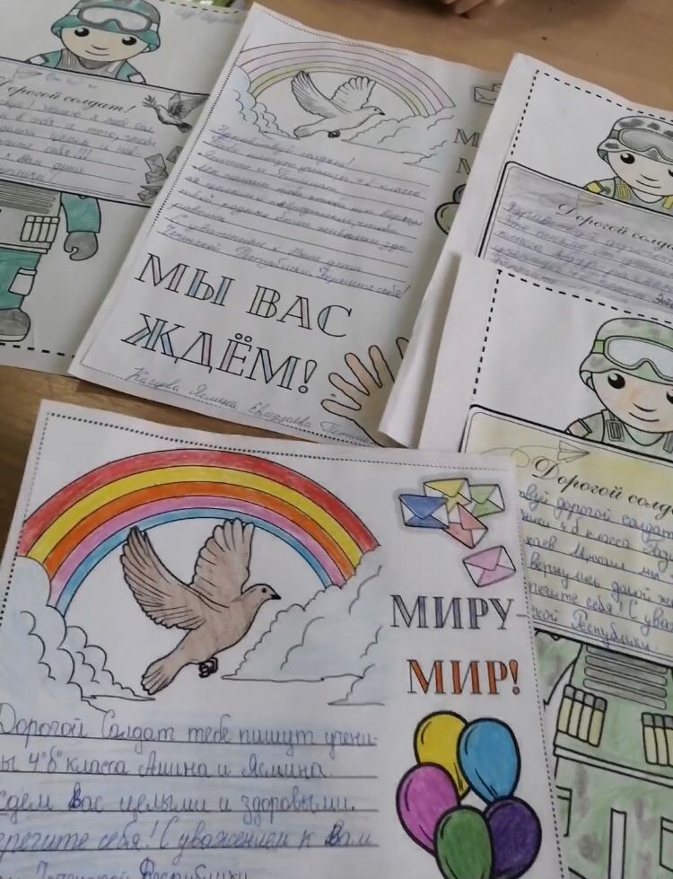 В акции приняли участие учащиеся 1-7 классов. Ребята обратились с теплыми словами поддержки ко всем тем, кто сейчас участвует в спецоперации. В своих письмах школьники выражали искреннюю признательность армейцам, высказали слова поддержки наших ребят, которые сейчас находятся на передовой. Школьники написали им простые и очень теплые и искренние слова, которые именно сейчас им так необходимы.